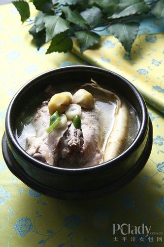 3、把焯過水的烏雞、料酒、蔥、生姜放入砂鍋內(nèi),用大火燒開后,改小火燉2 小時,加入精鹽即可。