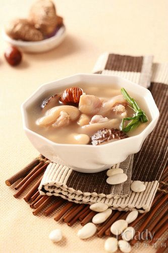 3、放入蔥、姜,倒入適量的開水,加蓋,燒開后轉(zhuǎn)小火煲40分鐘;加入豆腐,再煮5分鐘左右,加鹽、胡椒粉、雞精調(diào)味即可食用。