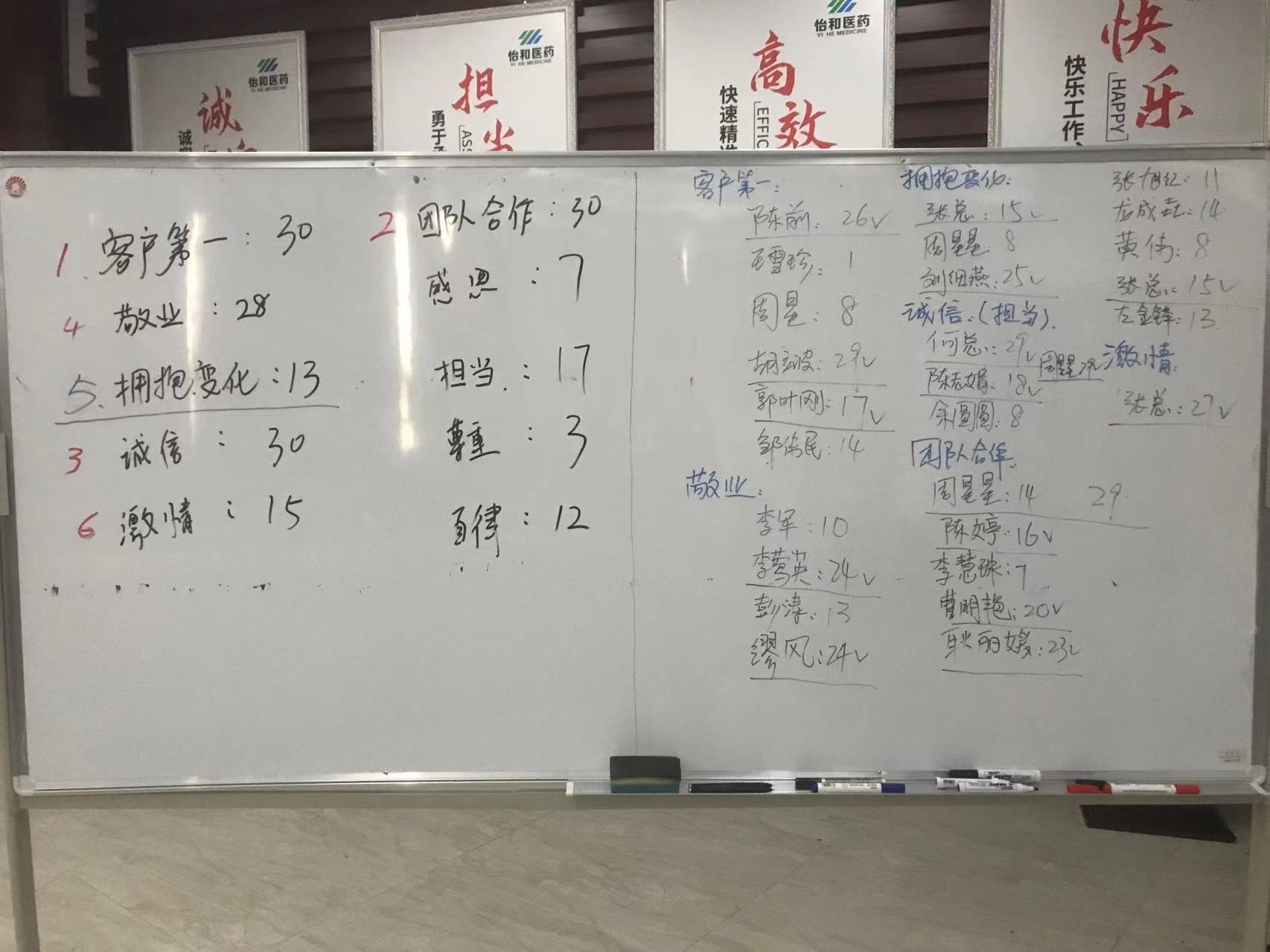 現(xiàn)場投票我們排序出前六的價值觀成為怡和醫(yī)藥新價值觀:客戶第一、團隊合作、誠信擔(dān)當(dāng)、擁抱變化、敬業(yè)、激情。