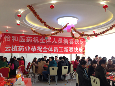 轉(zhuǎn)眼間2013年已邁著堅(jiān)定的腳步離我們遠(yuǎn)去,而充滿希望的2014正緩緩走來,在這辭舊迎新喜慶的日子,為了感謝全體員工一年來的辛勞和付出,公司于2014年1月18日,與云植藥業(yè)在食堂二樓共同舉辦2014新春聯(lián)歡。公司領(lǐng)導(dǎo)、云植藥業(yè)李鵬及各部門同事,在喜慶祥和熱烈的氛圍中,齊聚一堂,共慶新春。