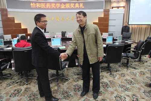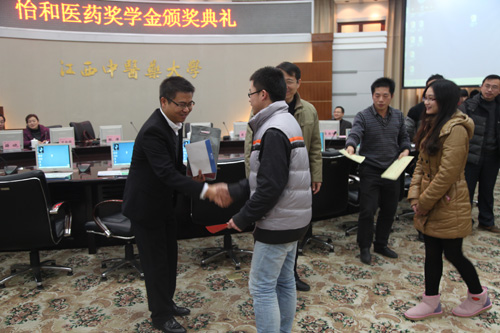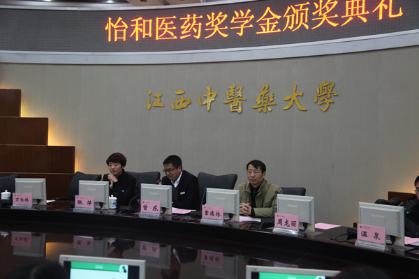 2015年元月6日,我公司在江西中醫(yī)藥大學(xué)設(shè)立的“怡和獎學(xué)金”,首屆頒獎儀式于當(dāng)天上午11:10在中醫(yī)藥大學(xué)行政樓多功能廳隆重舉行。公司副總經(jīng)理曾東、總經(jīng)理助理張萍及中醫(yī)藥大學(xué)副校長章德林,出席儀式并為獲獎學(xué)生頒獎,學(xué)工處、教務(wù)處、各學(xué)院分管學(xué)生工作負(fù)責(zé)人及獲獎學(xué)生代表參加儀式。