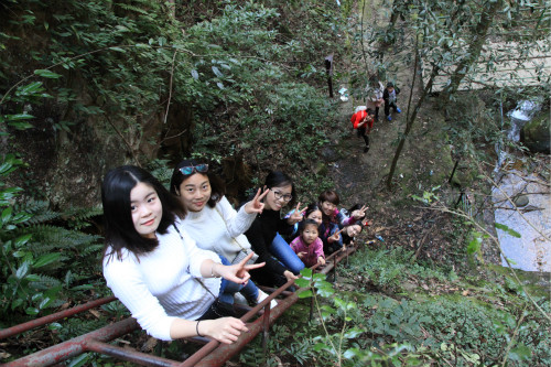 中午,大家集合在農(nóng)家樂(lè)中用餐。在美味佳肴中,大家互相交流情感。品嘗完美味的食物后,女神們前往武陵奇?zhèn)b,各位女神將展開(kāi)一場(chǎng)野外探險(xiǎn),去挑戰(zhàn)自我放飛激情的生命課堂,去嘗試全新自然探險(xiǎn)項(xiàng)目。逐漸遠(yuǎn)離水泥大樓,進(jìn)入鳥(niǎo)語(yǔ)花香,山清水秀的大自然懷抱。大家在享受優(yōu)美自然景色的同時(shí),也不忘留影紀(jì)念,增進(jìn)了彼此的情感,營(yíng)造了和諧融洽的集體氣氛。