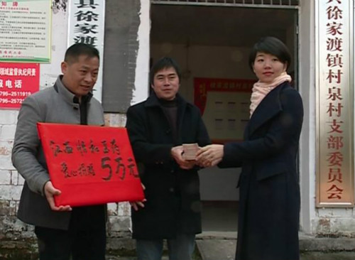 得知上高縣徐家渡鎮(zhèn)村泉村的情況后,2月8日我司副總張萍、業(yè)務(wù)部經(jīng)理劉細(xì)燕在上高縣農(nóng)醫(yī)局領(lǐng)導(dǎo)陪同下來(lái)到村泉村,詳細(xì)了解了該村近年的發(fā)展規(guī)劃及村民的生活狀況后,向該村送上修路資金五萬(wàn)元,希望通過(guò)此捐助能為該村修路和發(fā)展建設(shè)出一份綿薄之力。